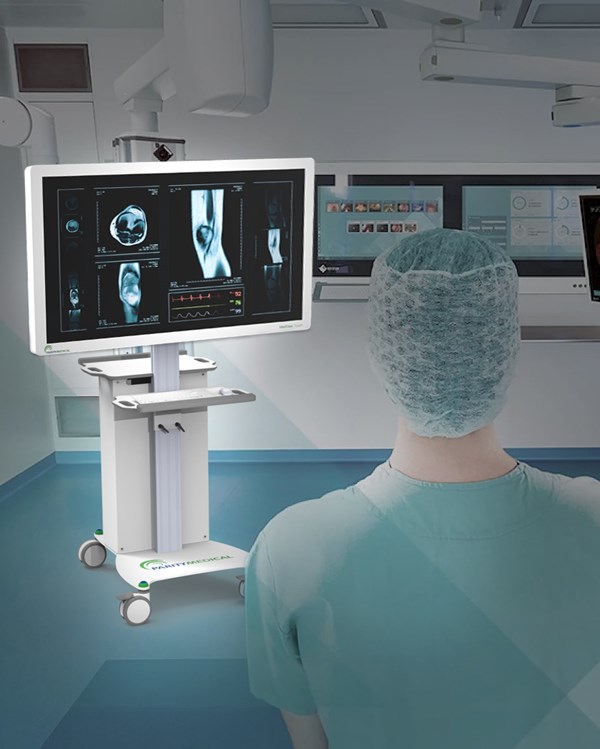 The SurgiView Cart is designed to mobilise large screen surgical displays in the O.R. This flexible approach is particularly beneficial in hybrid Operating Rooms and for use in Robotic Surgery Theatres. We frequently see challenges with mounting on/in-wall solutions in just the right position – the SurgiView Cart addressed this and also reduces downtime for installation, providing your clinical teams with the versatility they need.